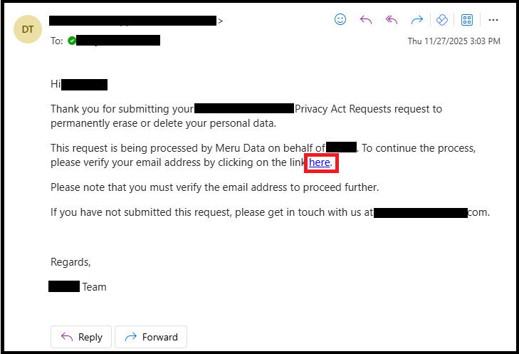• Verify via Privacy Portal
