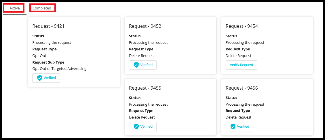 • Completed tab in the Privacy Portal contains details of requests that have been fully processed.