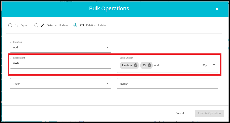 The Name and Type fields will be displayed only when the Add operation is selected.