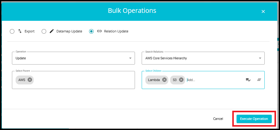 7.Click on the Execute Operation button to apply the relation changes for selected systems.