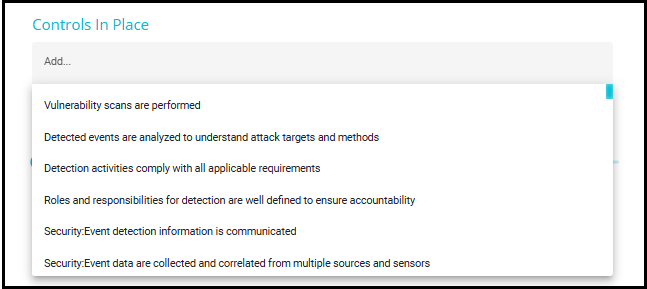 - Controls in place: Here you can enter the measures that are currently in place to combat/prevent such risks. Once a risk register is created, users can enter custom values to reflect the specific measures implemented.