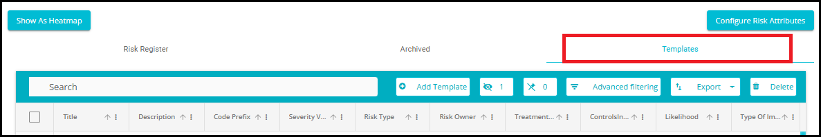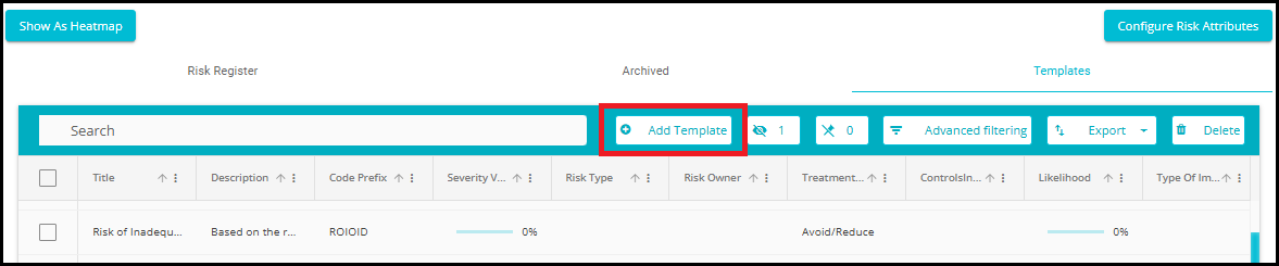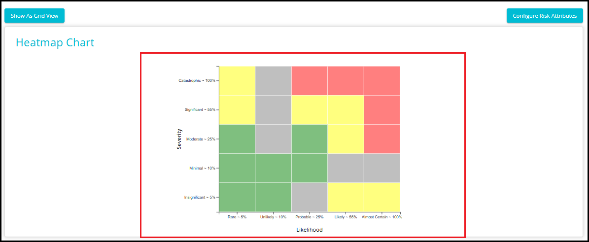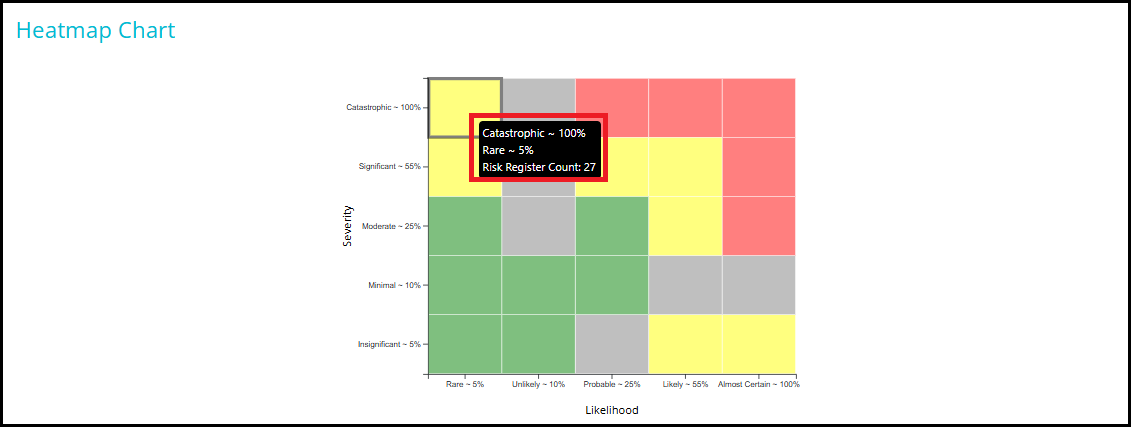 - By default, the Risk Register page will display the risks in the form of a Heatmap graph.