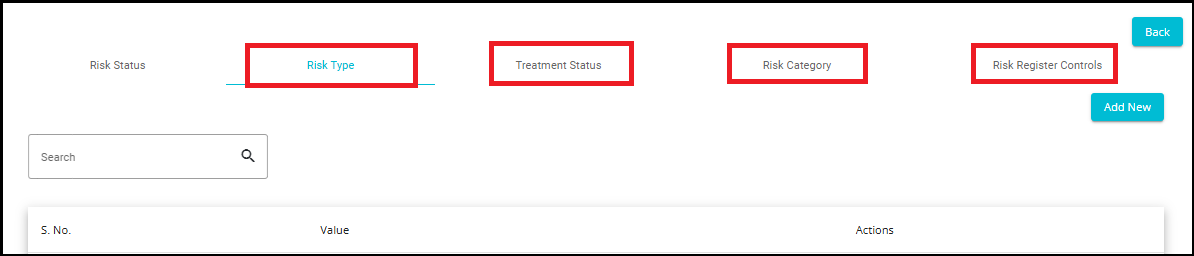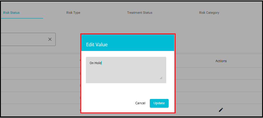 Note: If any existing values are updated, the changes will automatically reflect in all associated risk registers where the old value was used. The old value will be replaced with the new one across the system.