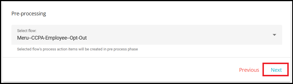 • Pre-processing is an optional stage in the DSAR flow configuration that allows you to perform additional actions before the main request is processed. It is useful when certain related tasks need to be completed in parallel to the primary request to ensure compliance or improve efficiency.