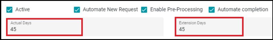 Extension Days -- Additional time required to process the request, in case of a delay.
