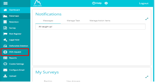 • Each request is processed based on the Flow mapped to it, which can be executed either manually by an administrator or automatically through configured automation settings. Each request can be processed differently, based on various aspects like the region, user inputs in different fields on the request form, and more. Once a user places the request, it is seen on the DSA Request dashboard, under the Active Requests section. You can refer to this guide to know how a request is processed in each stage - DSAR - User Guide.docx