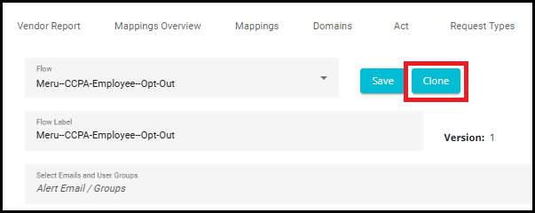 • When setting up a new tenant or creating the flow for the first time, the Create option will appear. From the second time onward, you will have the option to clone existing flows for easier setup and reuse.