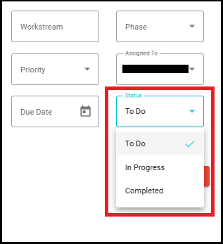 - Status: Select the current status of the task.