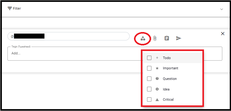 - Once the note is sent, the tagged users (those mentioned using the "@" symbol) can view it on their Dashboard under the Notifications section, in the Messages tab.