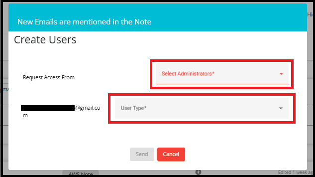 Select Administrators: A dropdown to choose an administrator who will approve and assign the required permissions to the user.