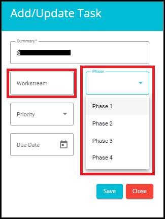 Phase: From the drop-down menu, select the Phase that the task is in.