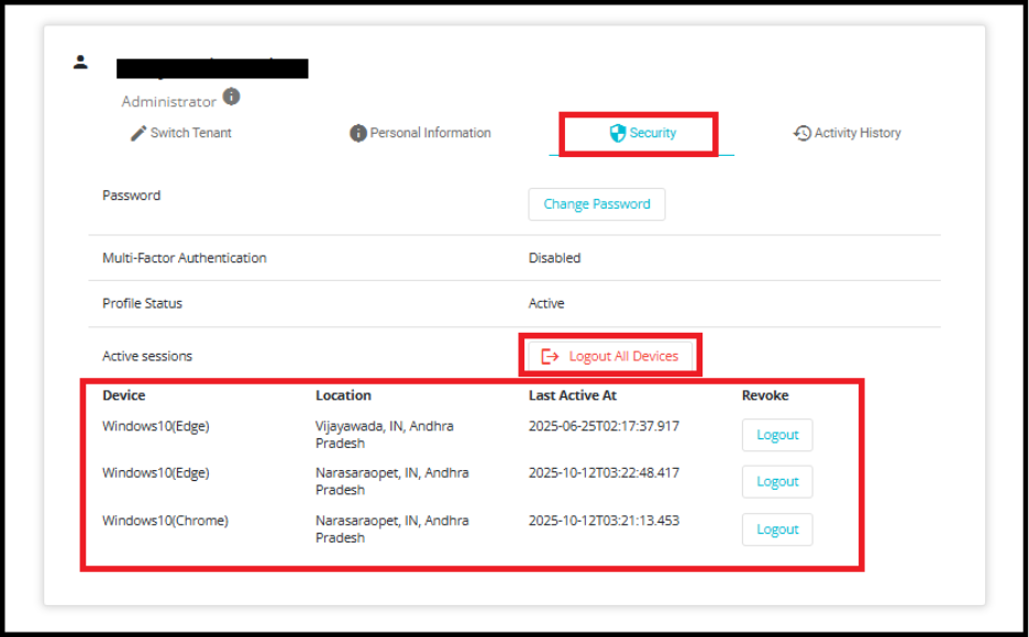 - The "Logout All Devices" feature is a security control that allows a user to sign out from all currently active sessions across all devices where their account is logged in.